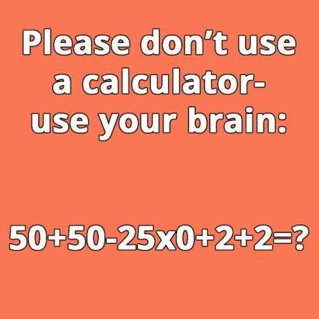 Can You Solve This: 50 + 50 – 25 x 0 + 2 + 2? Bet You Can’t Do It in 5 Seconds Without a Calculator!