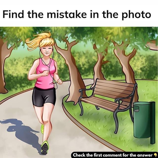 Here’s a fun challenge for you! Take a look at this picture of a girl jogging through a park. At first glance, it seems like a peaceful, everyday scene, right? But there’s something a bit off that you might miss if you’re not paying attention. Can you spot the mistake in the picture?