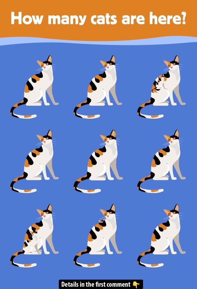 Put your powers of observation to the test with this deceptively simple cat grid! At first glance, you’ll spot a neat 3×4 arrangement of cats—12 in total. But look closer: three tiny kittens are cleverly tucked into the outlines of adult cats. Most people stop counting at nine, missing those hidden baby felines altogether. Can you find all three kittens and name their exact locations before reading on? Scroll down for the step-by-step reveal of where each little kitten is hiding, and see if you really are the most attentive viewer!